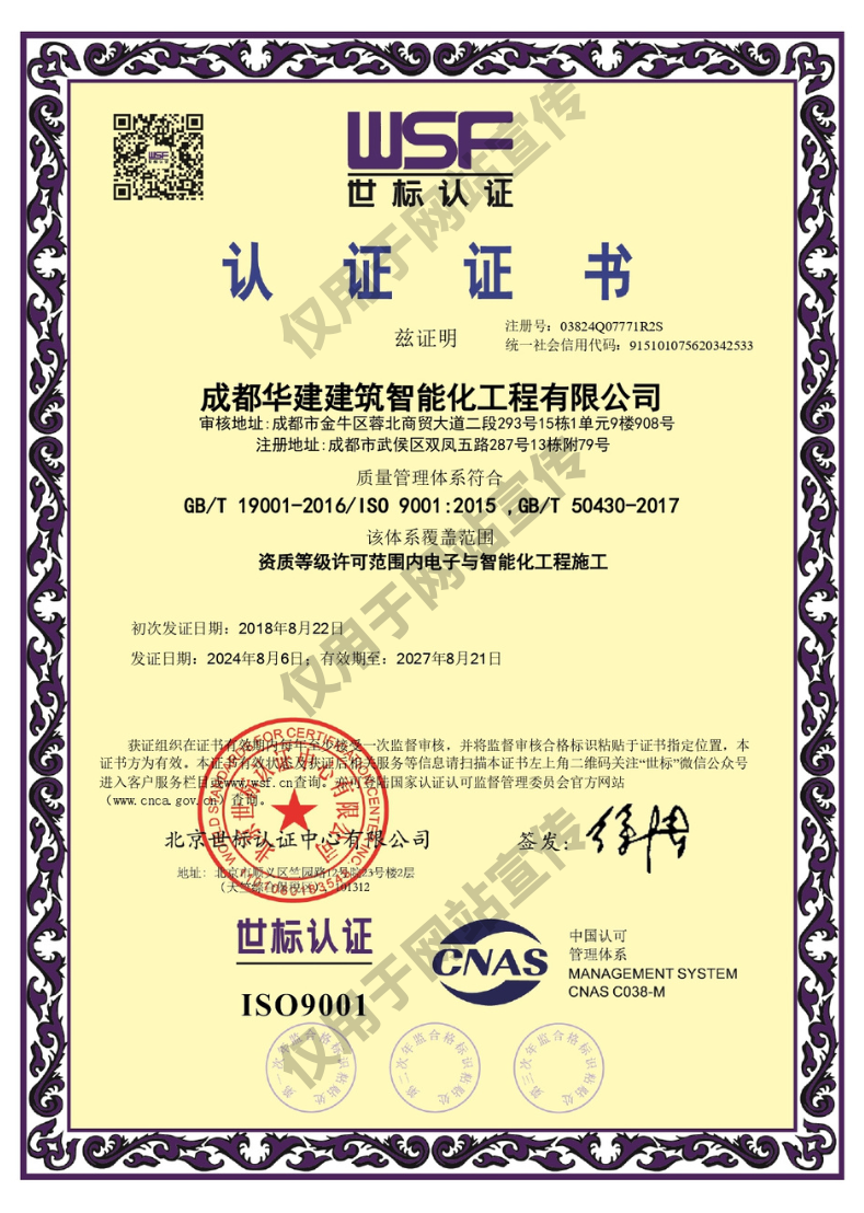 項目名稱:綿陽市游仙區激光產業基地項目二標段 弱電工程; 公司簡介:項目名稱:綿陽市游仙區激光產業基地項目二標段弱電工程施工單位:成都華建建筑智能化工程有限公司工程地點:四川省綿陽市施工內...